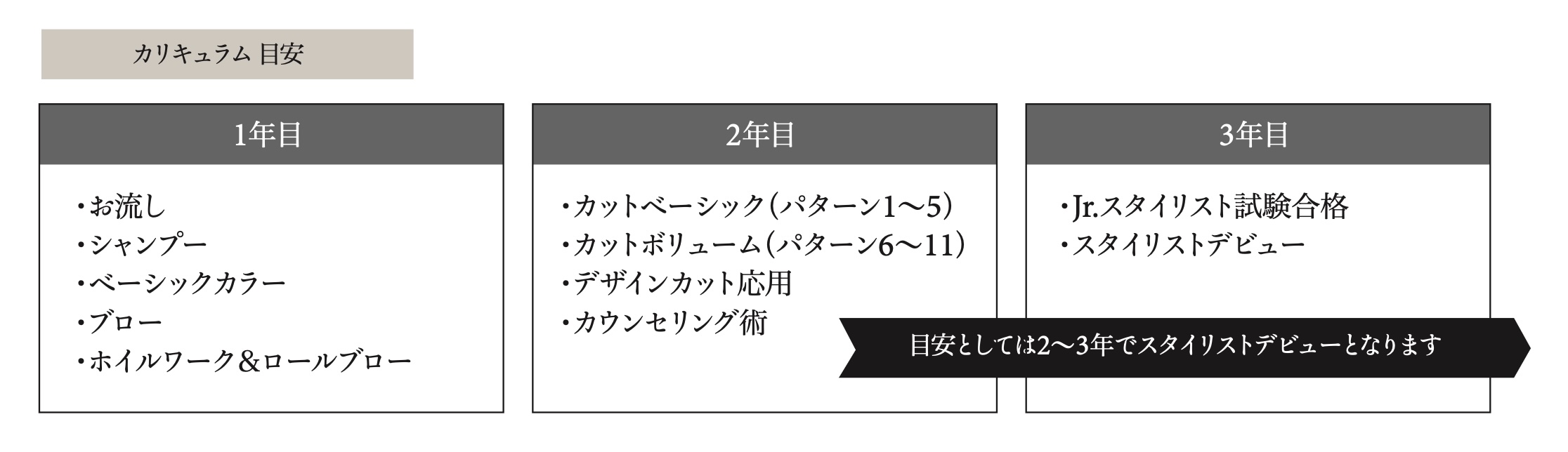 個々のペースに合わせて、スタイリストデビューへと導きます。